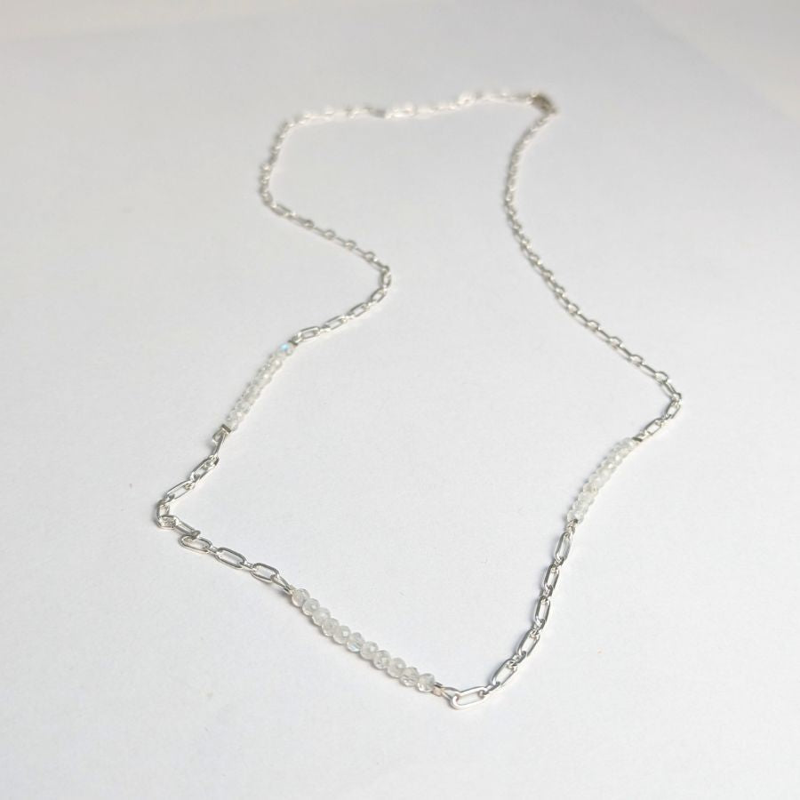 Accented Chain Necklace: Polished Sterling Silver & Moonstone