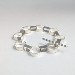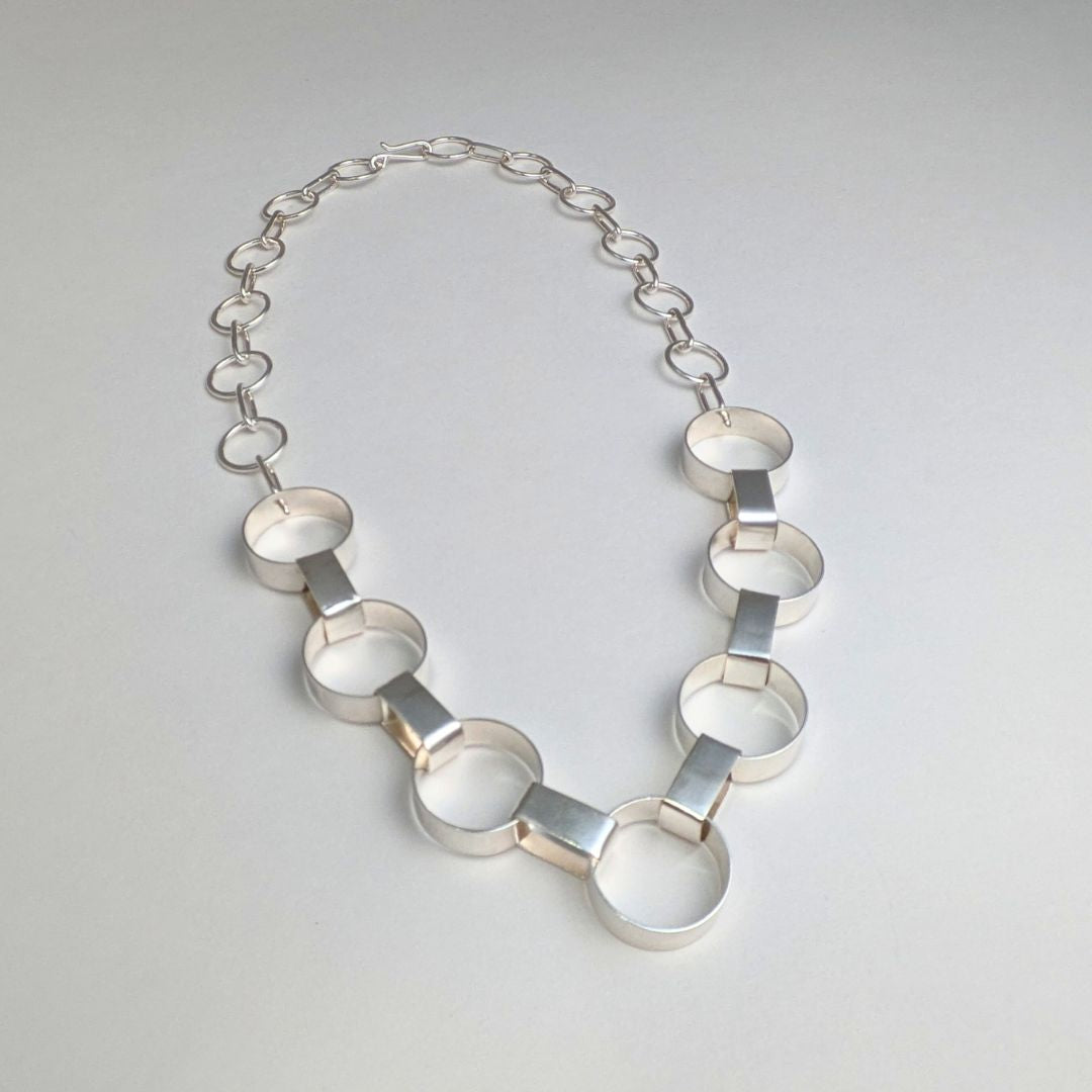 This chain necklace combines the links from my circle chain necklace and new garland chain to create a bold statement for the wearer. The necklace is lightweight and made from solid sterling silver. Each link is hand-formed, soldered and the necklace is finished with a hand crafted s hook clasp.
