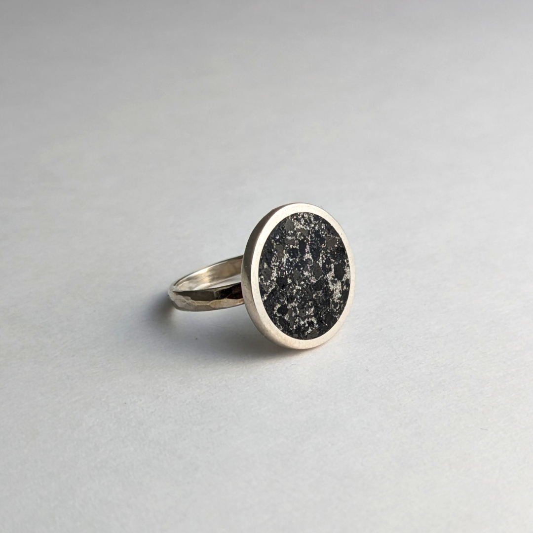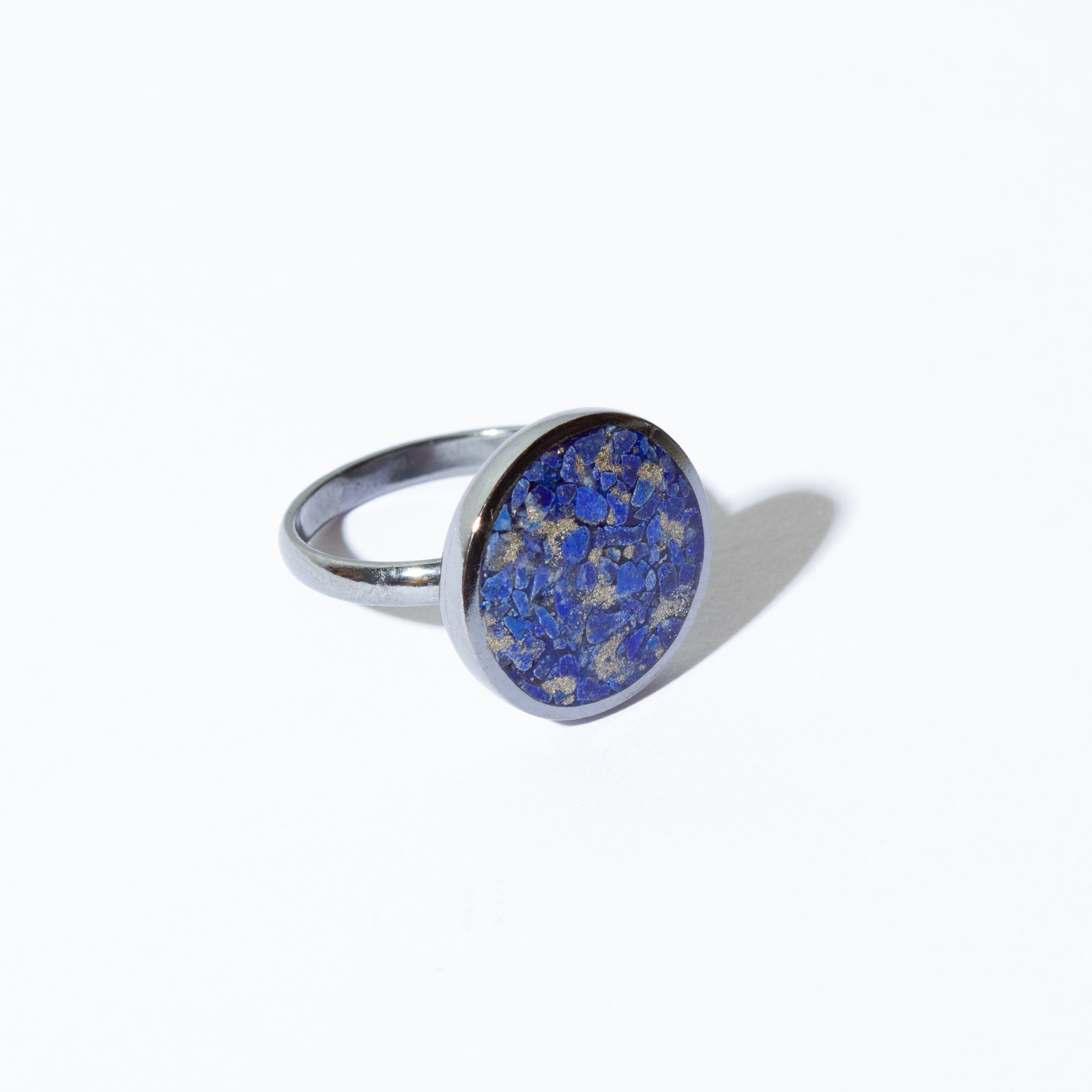 This ring is one of our best sellers! It's bold ring but super comfortable for every day. The shank is smooth, polished sterling silver with a half round profile. The inlay bezel sits on top of the band so other thin rings can be stacked with it.