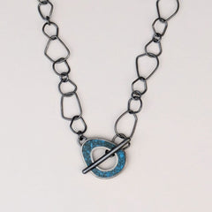 These chain-link studs are organically formed by hand with mandrels and soft jawed pliers. No two earrings are the same. The formed links are terminated by round links to match the Irregular Chain Necklace.