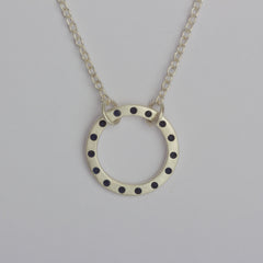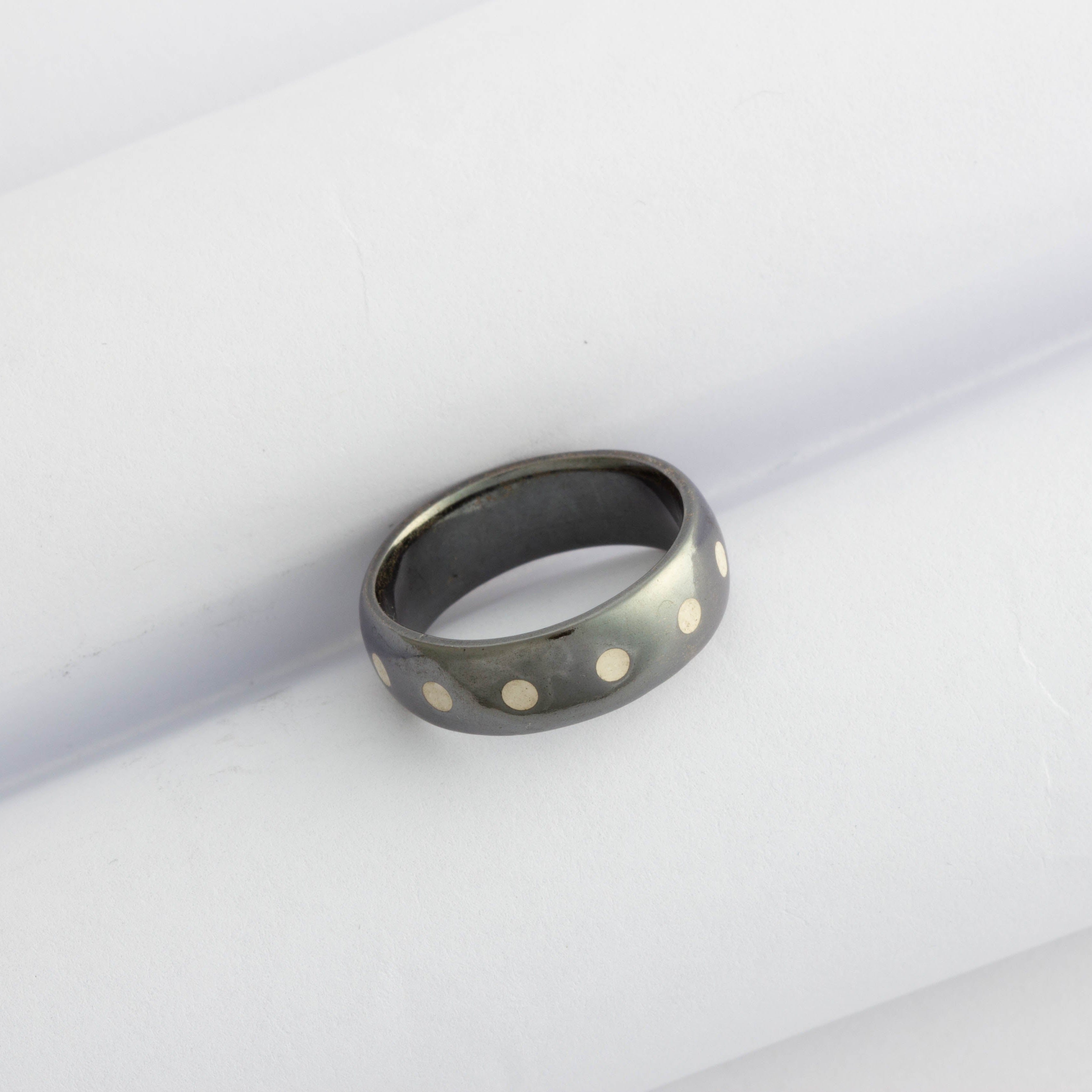 Pictured: Full eternity of dotted Black Jet stone inlay in a brushed sterling silver band.